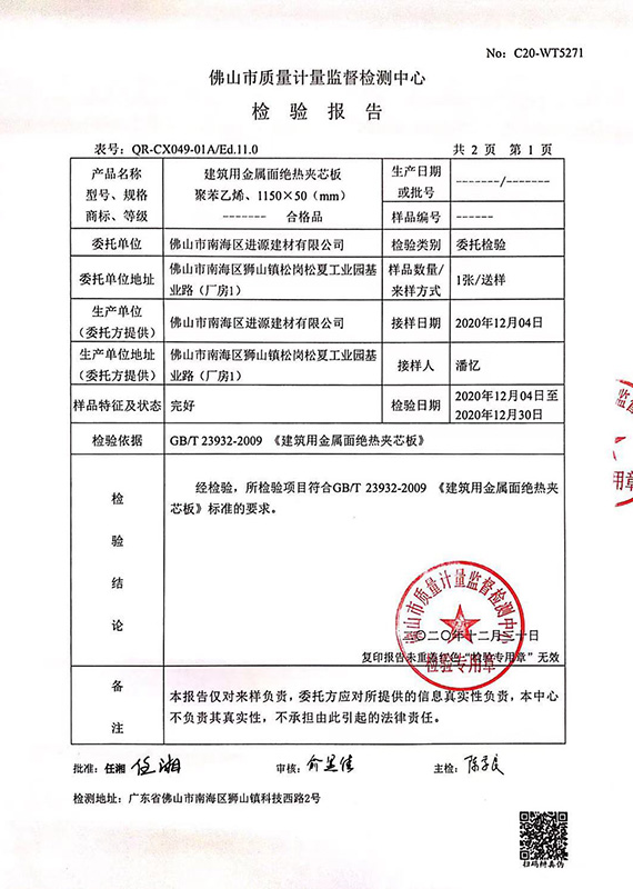 2021年最新泡沫板檢驗(yàn)報(bào)告